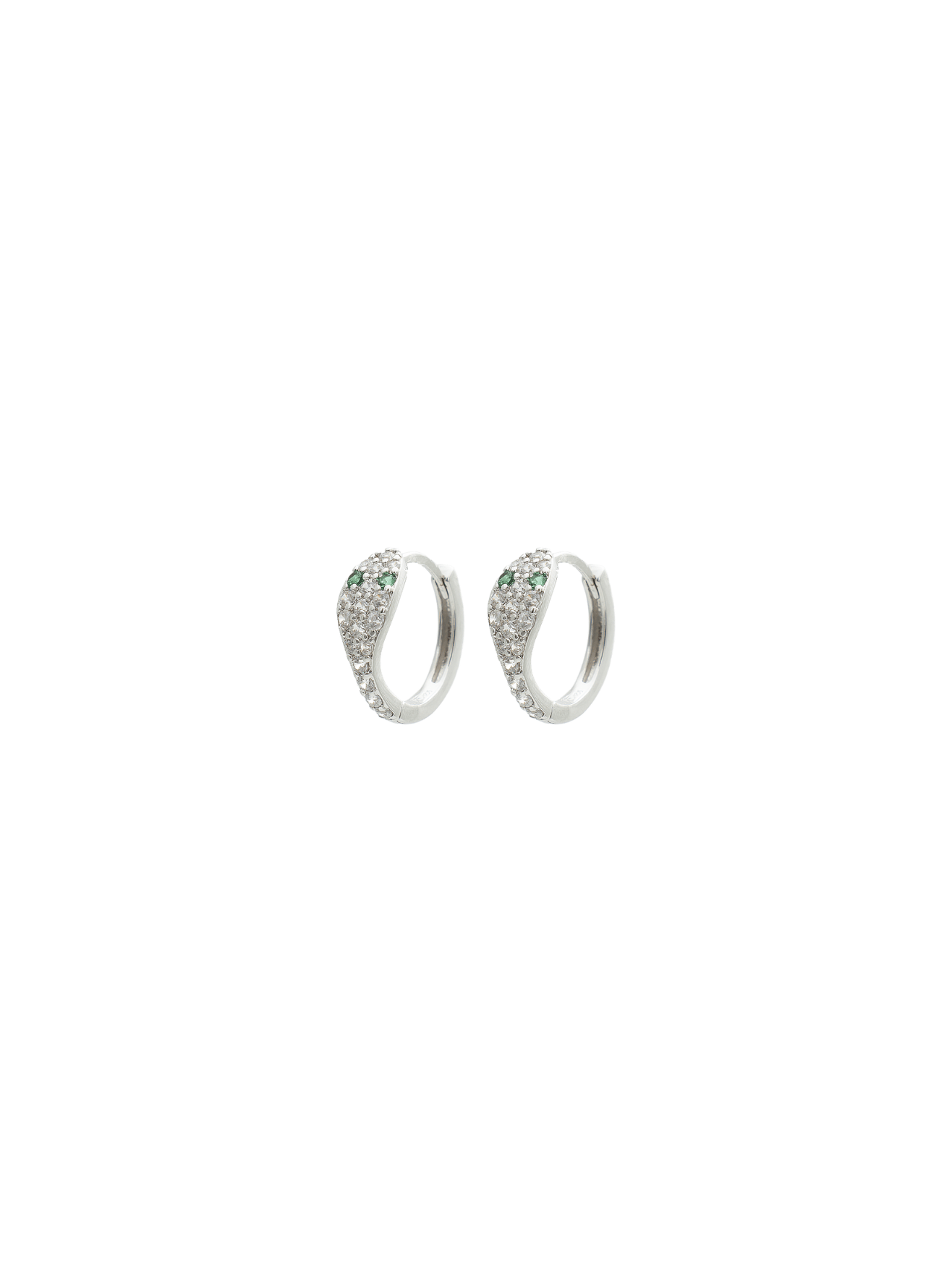 Mini Hoops Serpiente Ojos Verdes Rodio