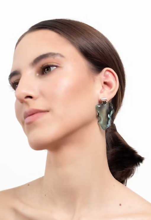 Materiales: Plata esterlina reciclada de radiografías y vidrio de borosilicato soplado artesanalmente.