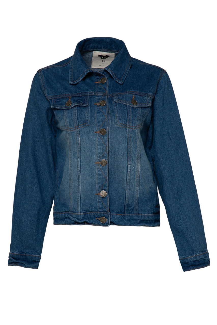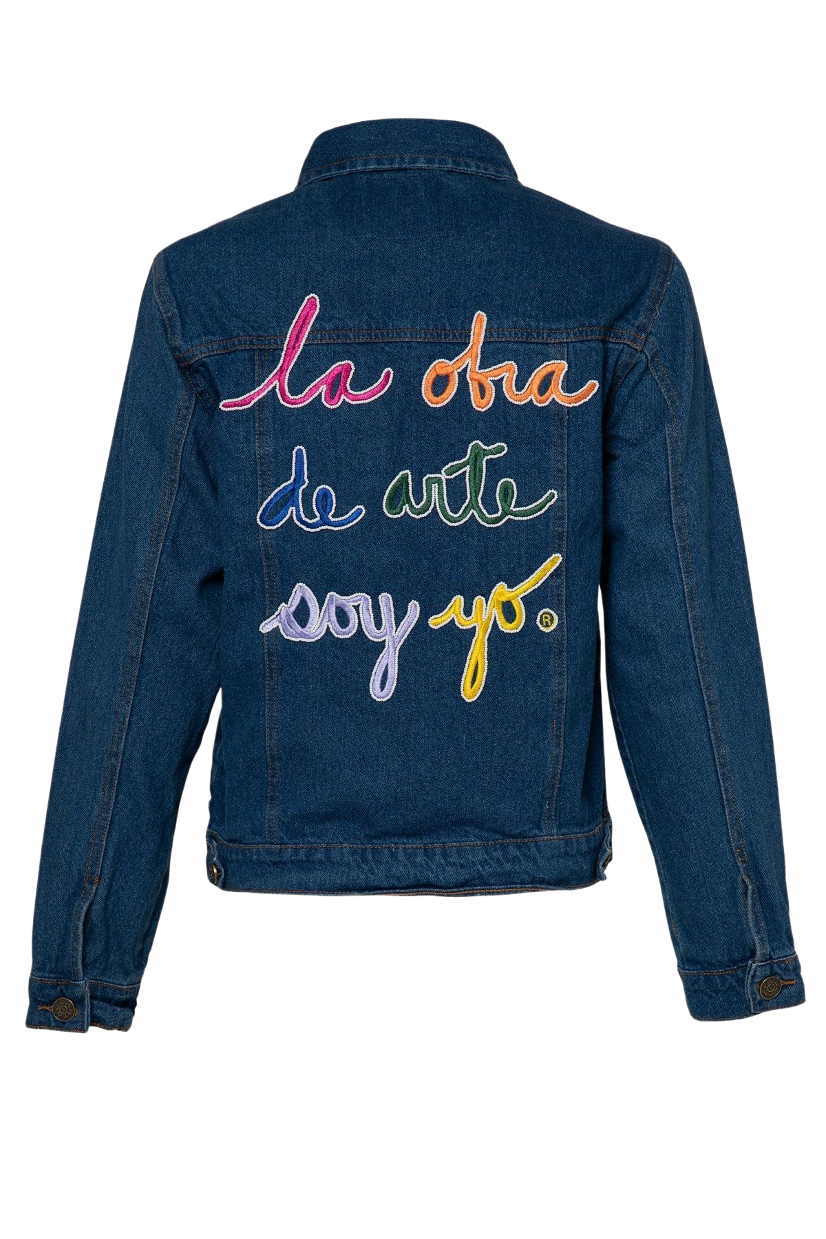 Chaqueta clásica en denim, 100% algodón, bordada en la espalda, en hilo multicolor.