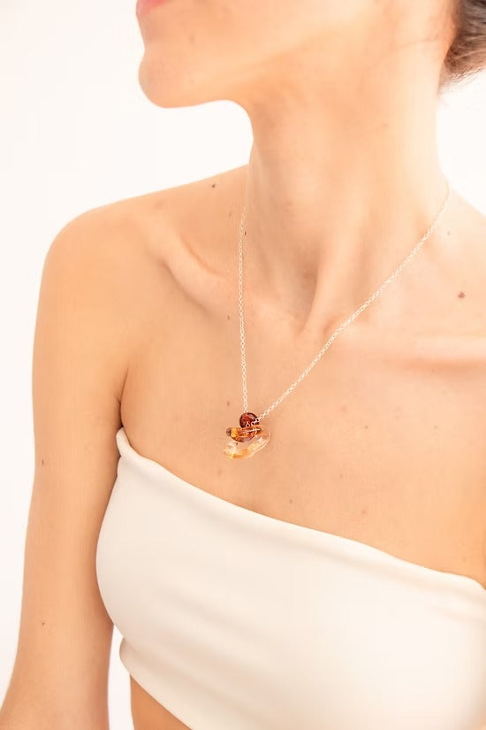 Materiales: Plata esterlina y vidrio de borosilicato soplado artesanalmente.