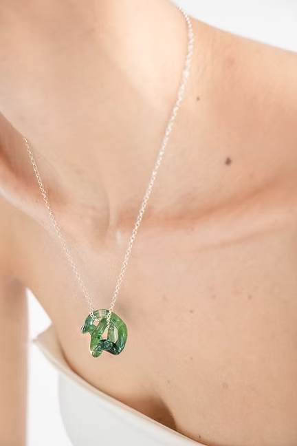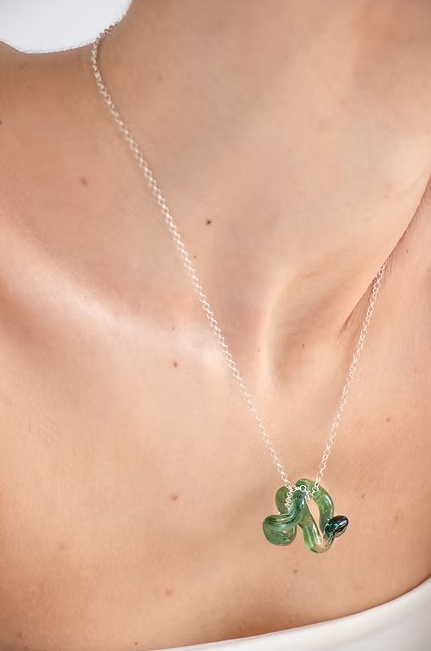 Materiales: Plata esterlina y vidrio de borosilicato soplado artesanalmente.