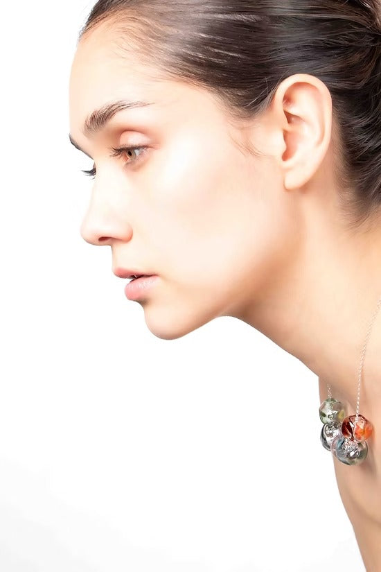 Materiales: Plata esterlina y vidrio de borosilicato soplado artesanalmente.
