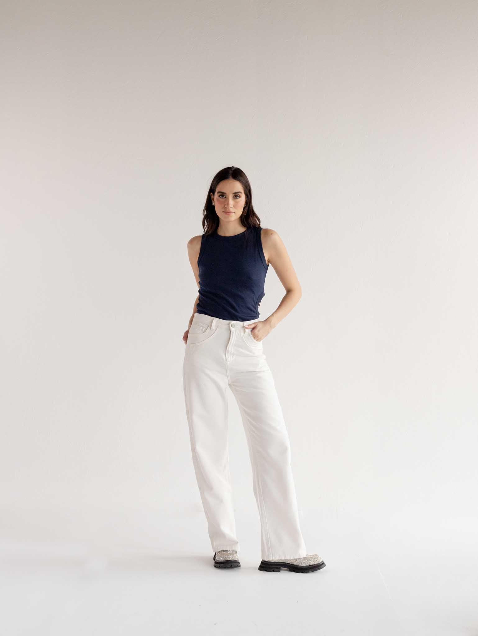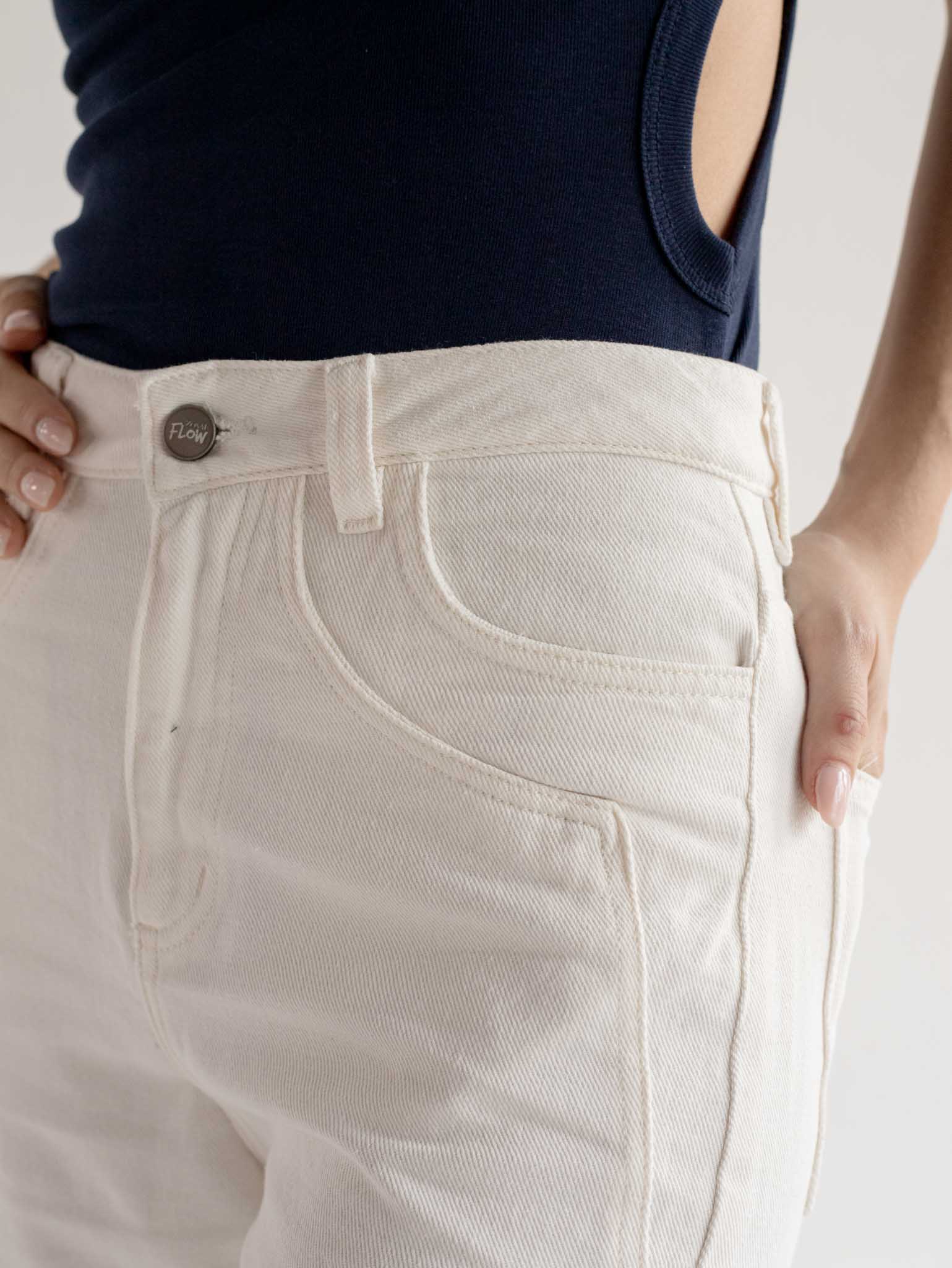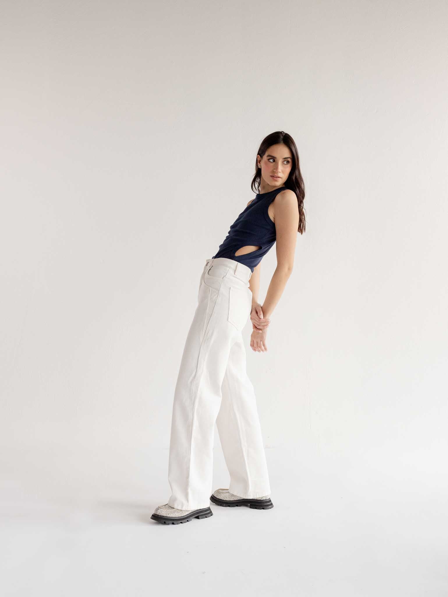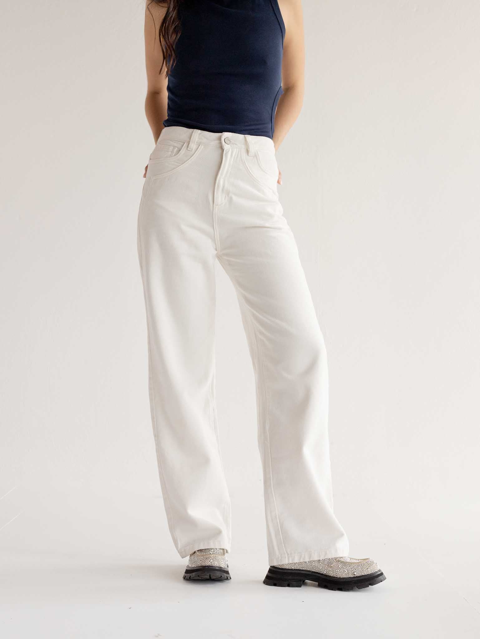 Jean wide leg con doble bolsillo, tiro medio alto elaborado en 100% algodón