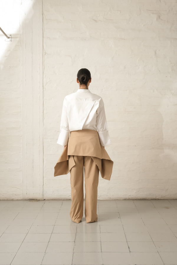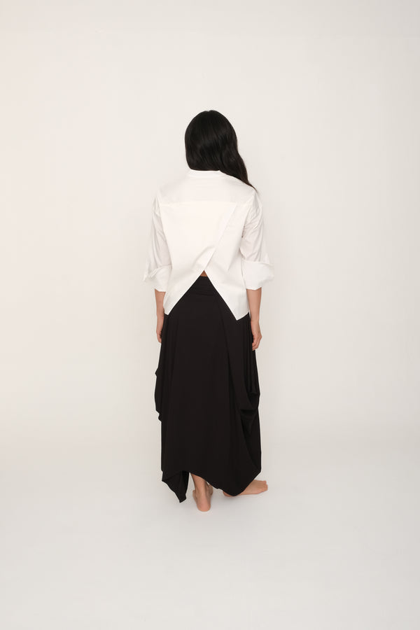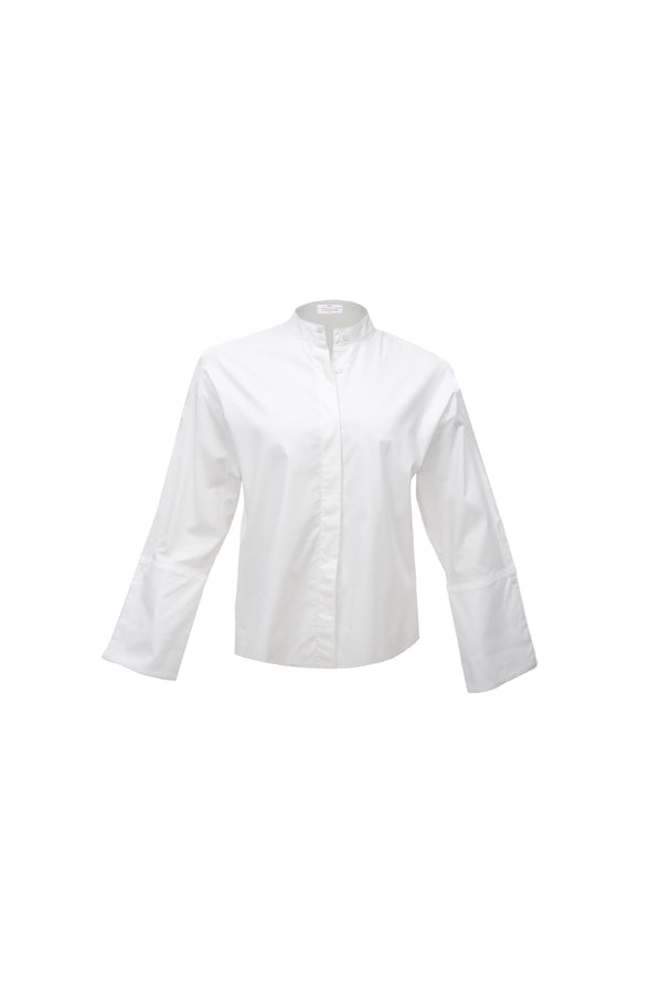 Blusa manga larga y suelta. Con cuello neru y escote pico. Cierre frontal con botones combinados a tono. Largo asimétrico trasero. Puño con corte asimétrico y botón. Hecho en Colombia.