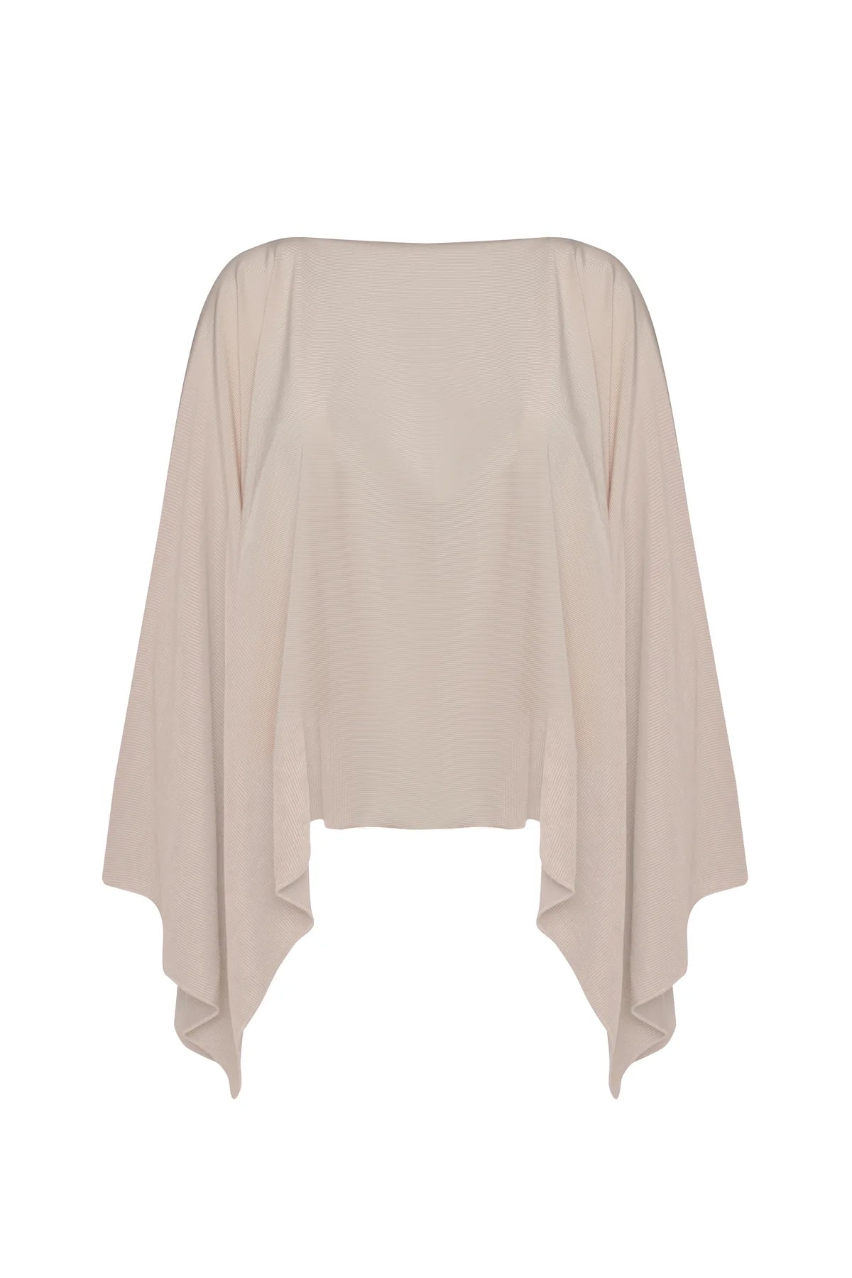 Capa superior holgada color Cruda. Plisada. Manga corta.