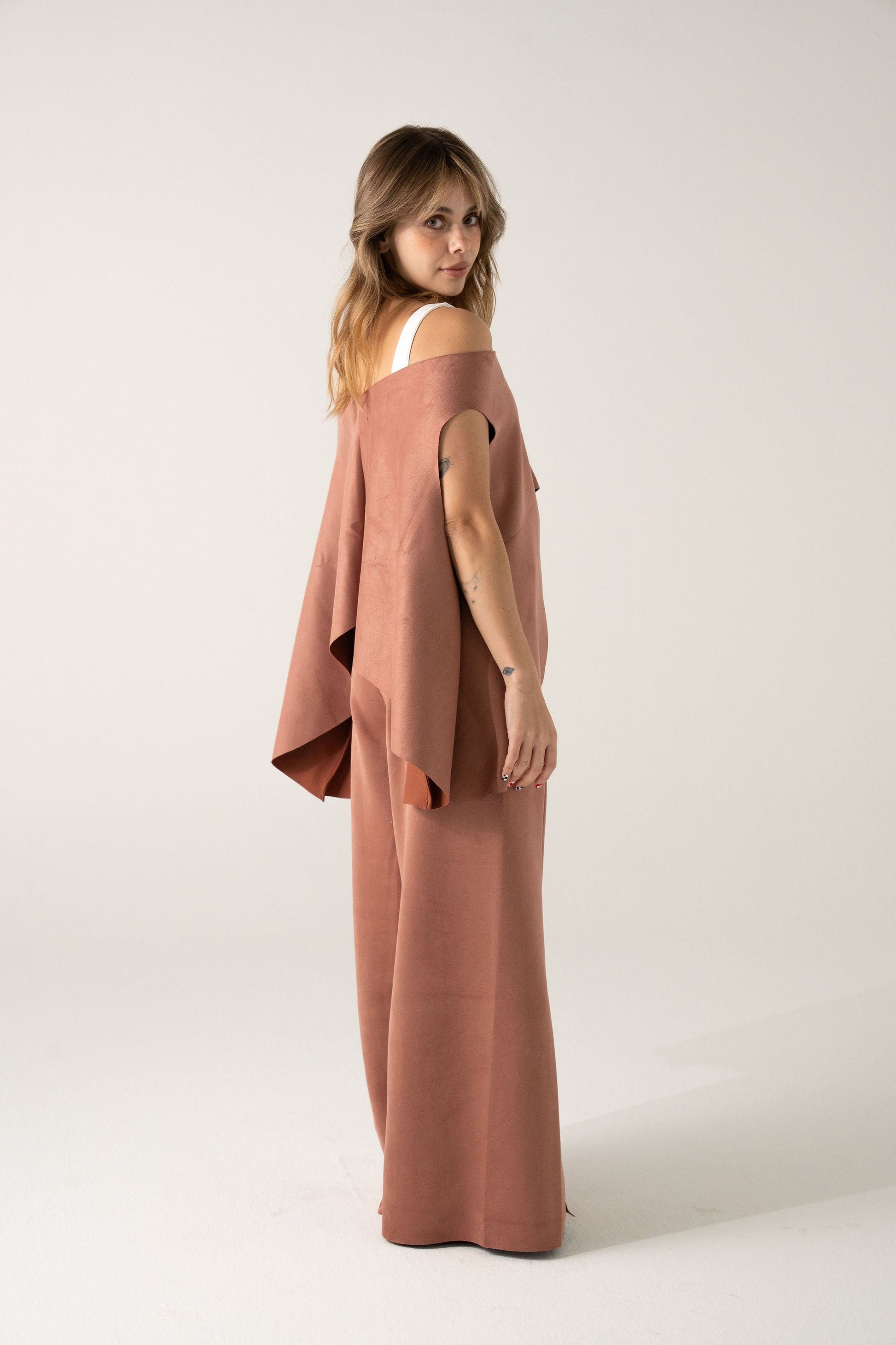 Eleva cualquier look con nuestra capa para mujer, una prenda exterior ligera, elegante y diseñada para complementar y transformar tus outfits. Su silueta fluida y su diseño limpio hacen de esta pieza un básico premium ideal para crear looks modernos, cómodos y con estilo.