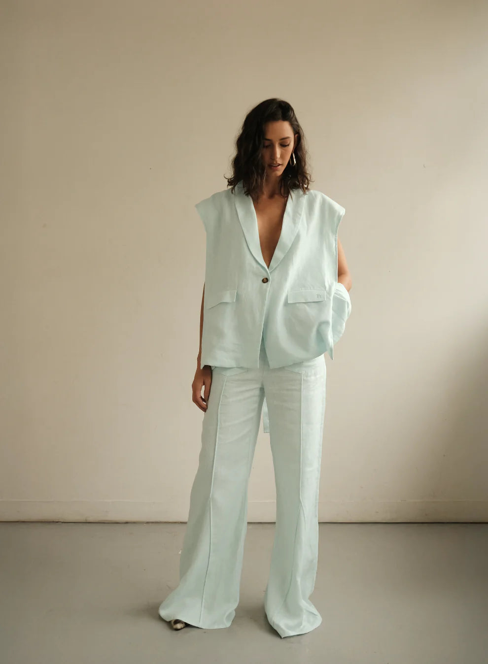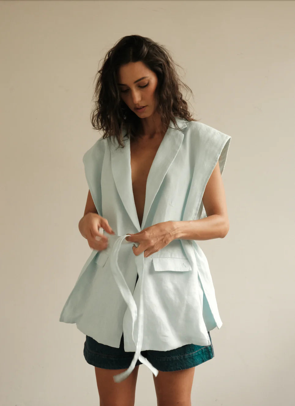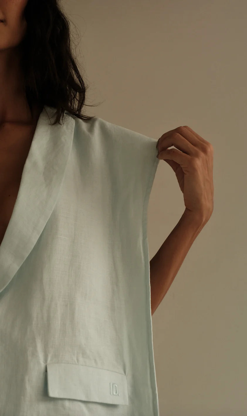 Chaleco Sera de Lino Azul Claro