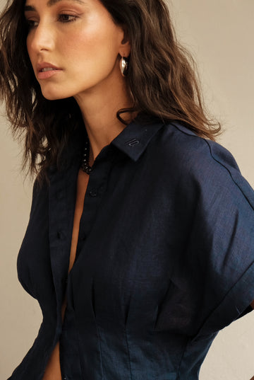 El Top Akito es nuestra versión más fresca y femenina de las camisas Insignia clásicas. Con un ajuste sutil en la cintura y cuello de camisa, logra el equilibrio entre estructura y fluidez. Los detalles que la hacen un tesoro de esta colección: los botones en forma de flor, las pinzas que entallan sutilmente, y nuestro logo ID. bordado en el cuello. Es especial y fácil de llevar.