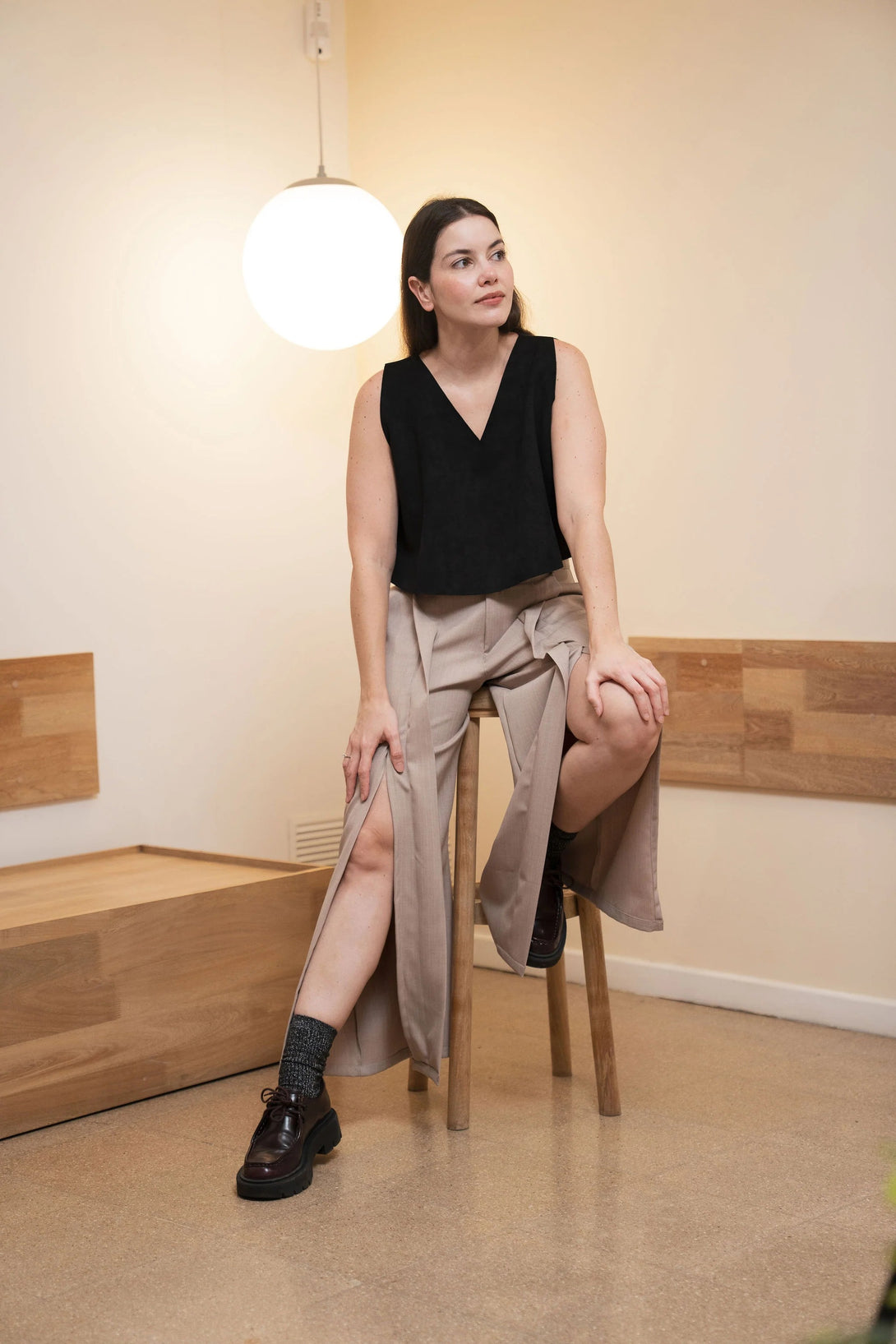 Esta prenda es absolutamente versátil, fresca y cómoda, puedes usarla en el día a día o en una ocasión especial mezclándola con diferentes prendas que tengas en tu clóset, como una camisa de algodón blanca, o un buzo cuello tortuga, dándole así una variación a chaleco o sobre-prenda.