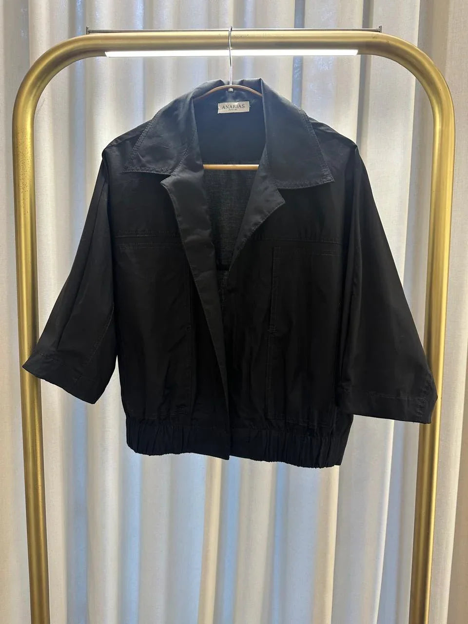 Chaqueta corta a la cintura con cuello de camisa, sin abotonadura, bolsillos sobredimensionados de parche con doble pespunte y manga tres cuartos con pliegue en el puño. Úsala sobre todo y combinala con faldas, pantalones o tus jean favoritos para un look mas informal! Esta nueva silueta llega como esa tercera pieza que nos permite elevar nuestros looks y darle ese toque especial!
