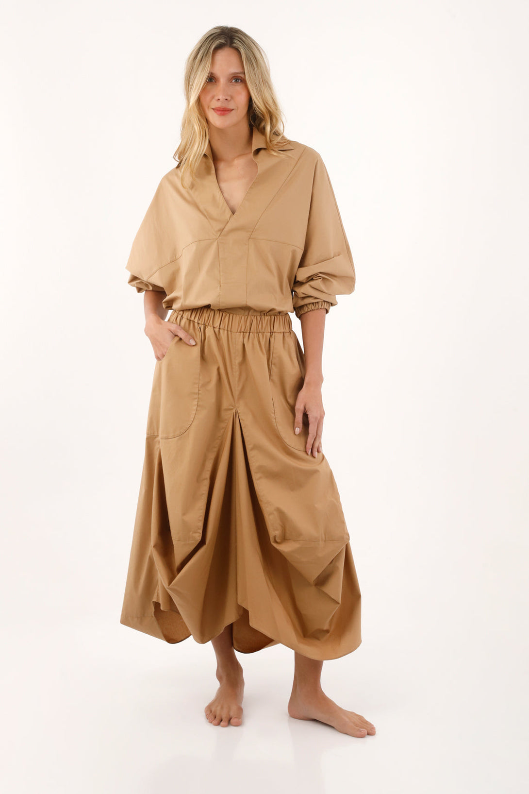 Composición: 97% algodón y 3% de elastómero, de tacto algodonoso, fresco y confortable, pero a la vez con cierta estructura que hace que los cortes y mangas se destaquen y se vean espectaculares.