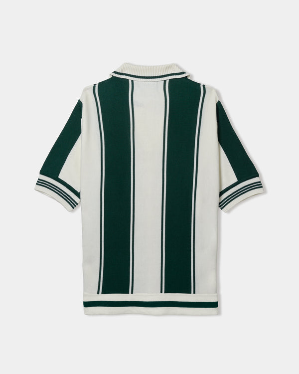 Un diseño inspirado en la tradición deportiva de Nacional con un toque vintage. Sus franjas verticales en verde y blanco evocan elegancia y frescura, mientras que los detalles en el cuello, mangas y basta aportan contraste y carácter. Confeccionada en tejido de punto ligero, asegura comodidad y un ajuste relajado, ideal para lucir con estilo en cualquier ocasión.