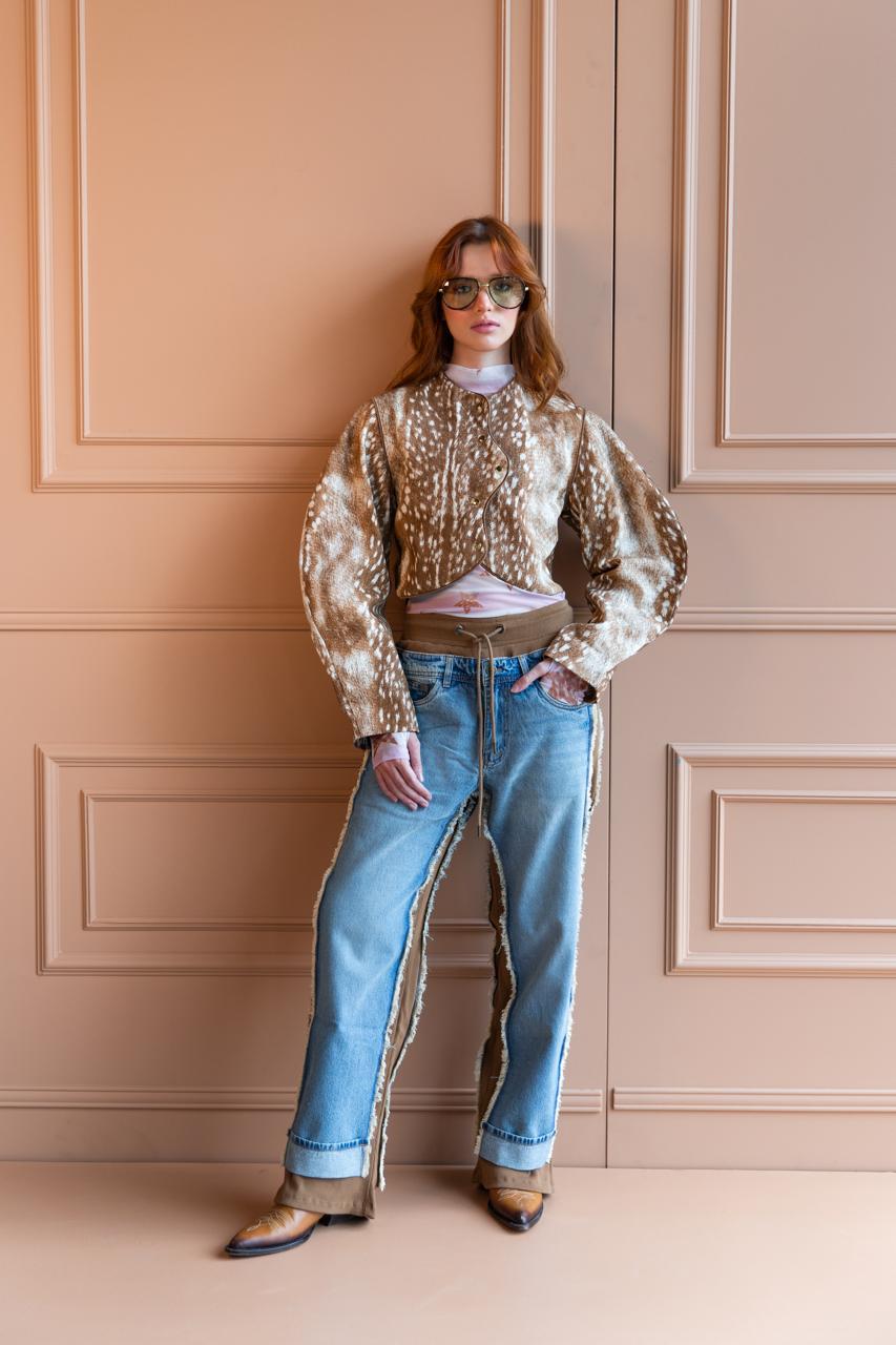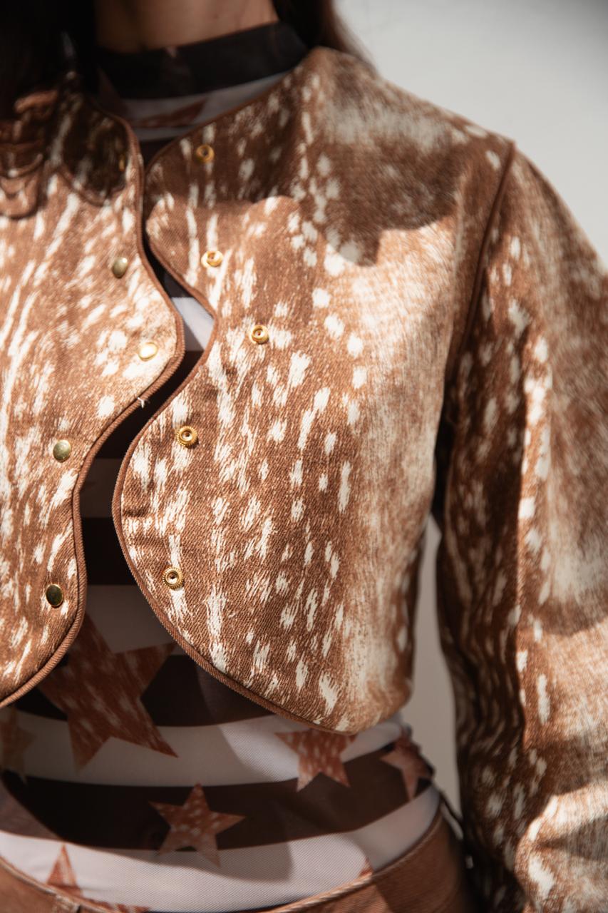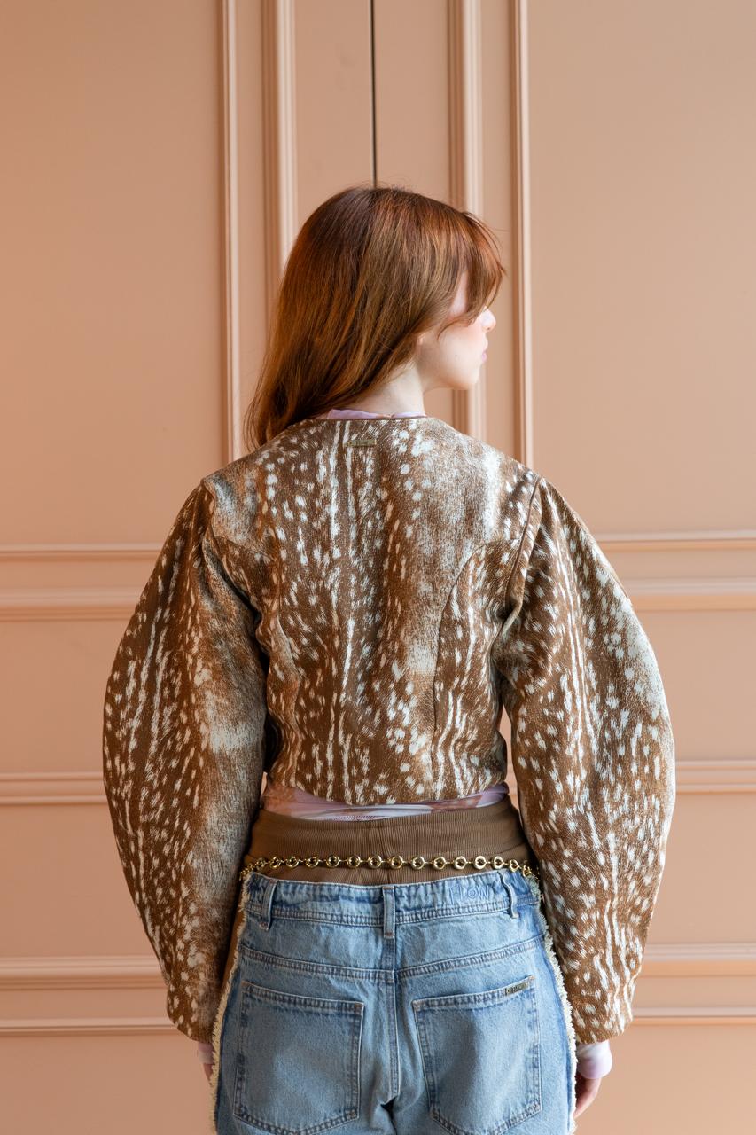 Chaqueta Bambi cropped con mangas globo y estampado de venado en el forro interno Elaborada en 100% algodón