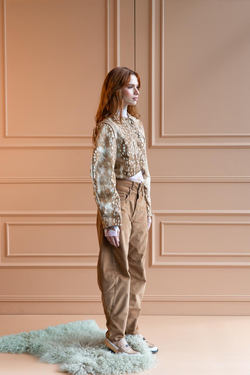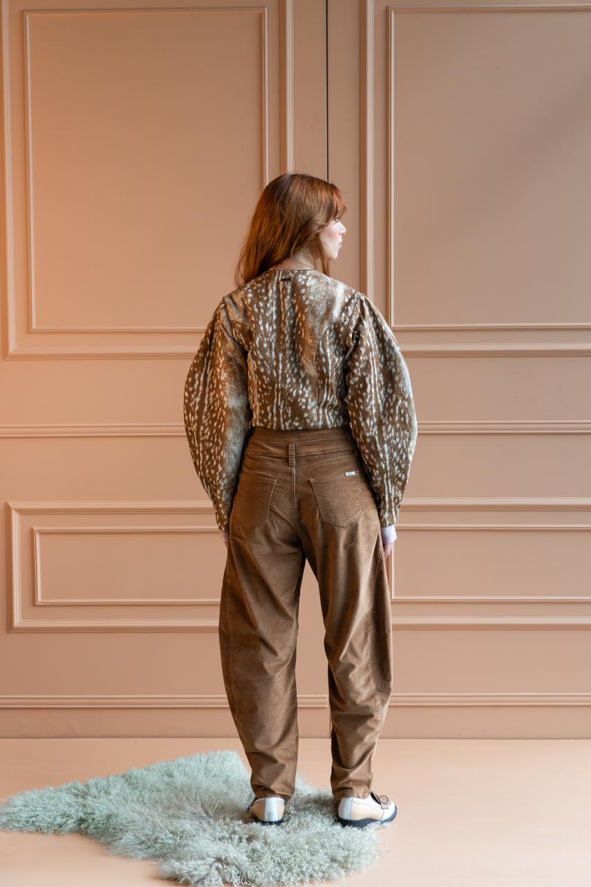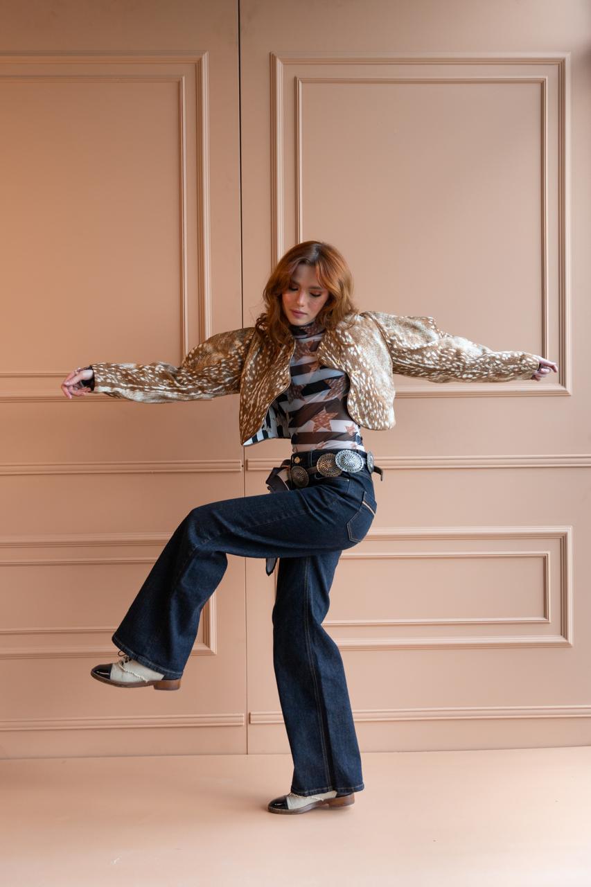 Chaqueta Bambi cropped con mangas globo y estampado de venado en el forro interno Elaborada en 100% algodón