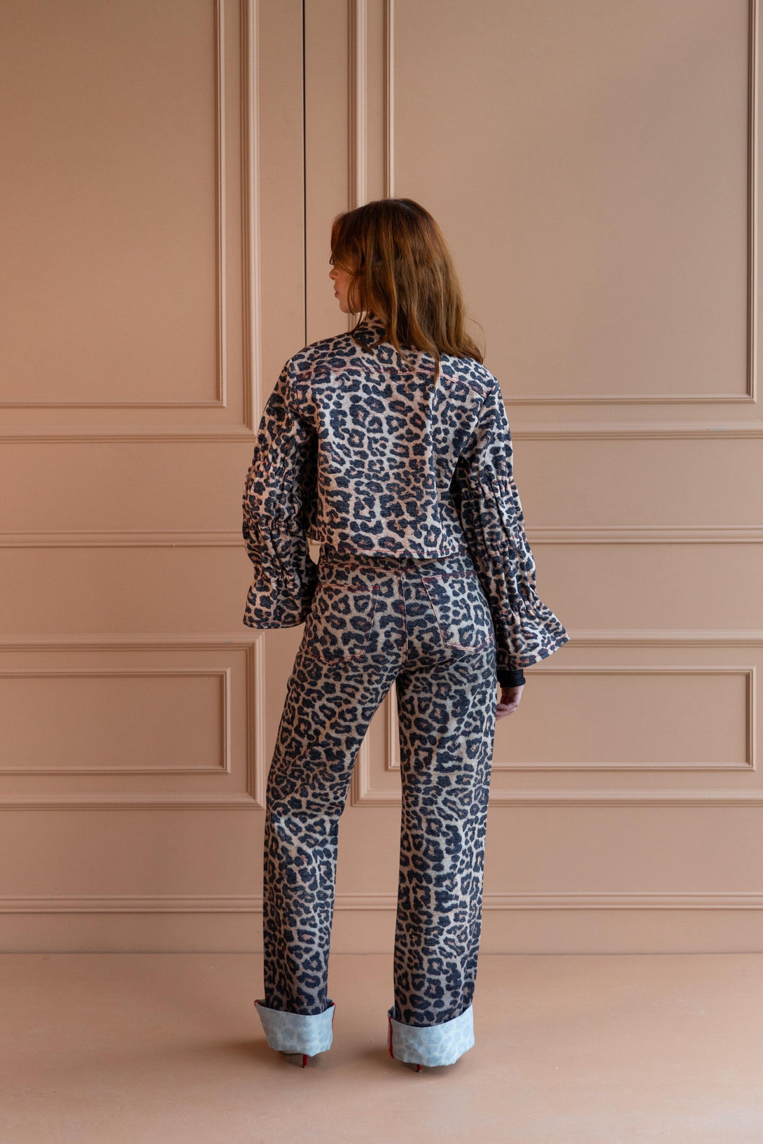 Chaqueta Wild Amore, mezcla una silueta clásica de Flow con el animal print esta elaborada en en dril de algodón estampado