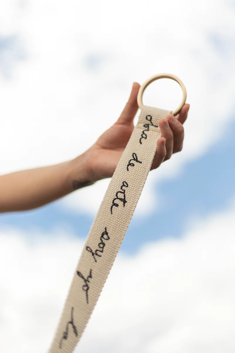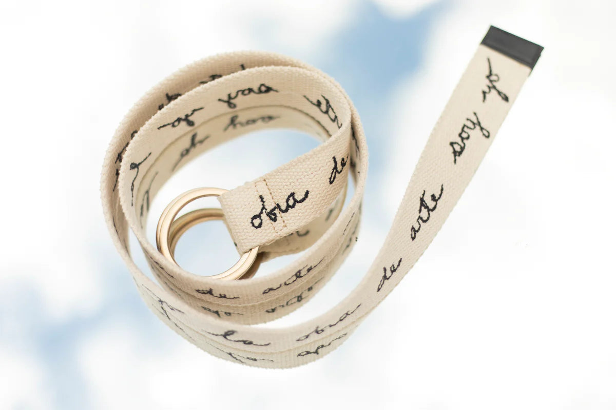 Cinturón en algodón con punteras en 100% cuero y argollas con baño de oro.