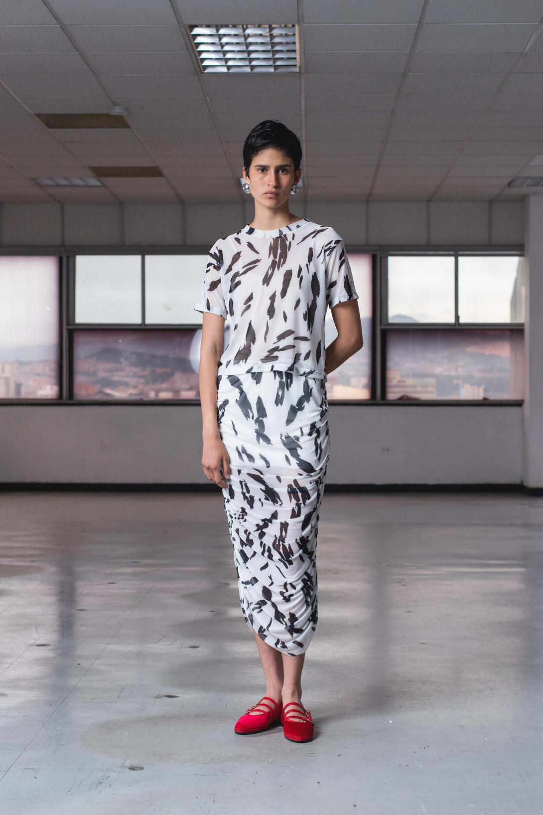Falda tipo lápiz, de tiro alto. Elaborada en un 94%poliester y en un 6% spandex, en estampado dálmata. Es perfecta para llevara juego con el blazer Cruela o la t-shirt Cruela. La modelo lleva una talla S y mide 1,75. Esta prenda es hecha en Colombia en condiciones de trabajo éticas.