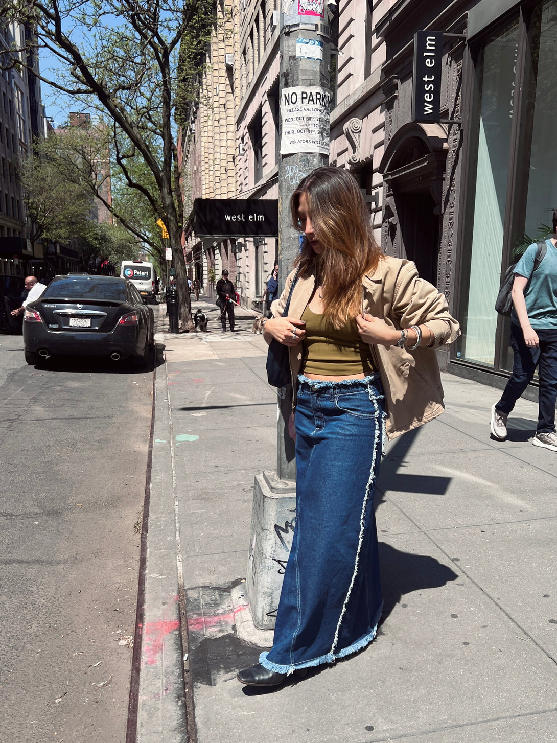 Lo mejor de una pieza de denim: atemporal, versátil y con carácter. Esta falda larga tiene estructura y caída, pero es tan liviana que puedes usarla todo el día. Los bordes deshilachados le dan ese twist inesperado — un detalle libre, divertido y crudo— que eleva cualquier look sin complicarlo.