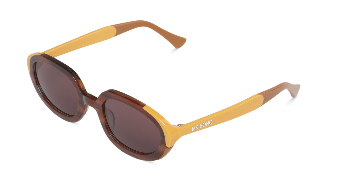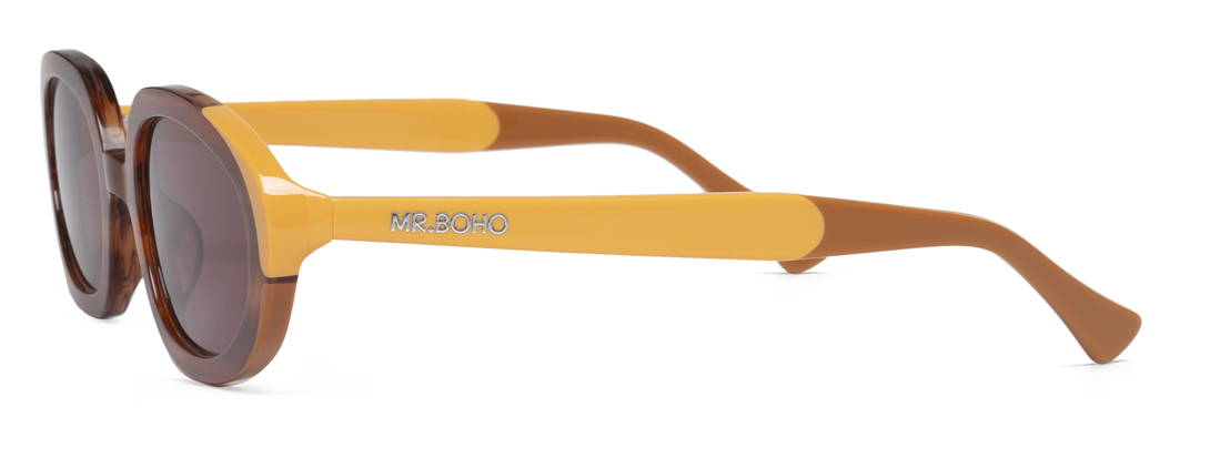 Montura caramelo con detalles en ámbar vibrante. Un estilo cálido y audaz que irradia energía y personalidad.