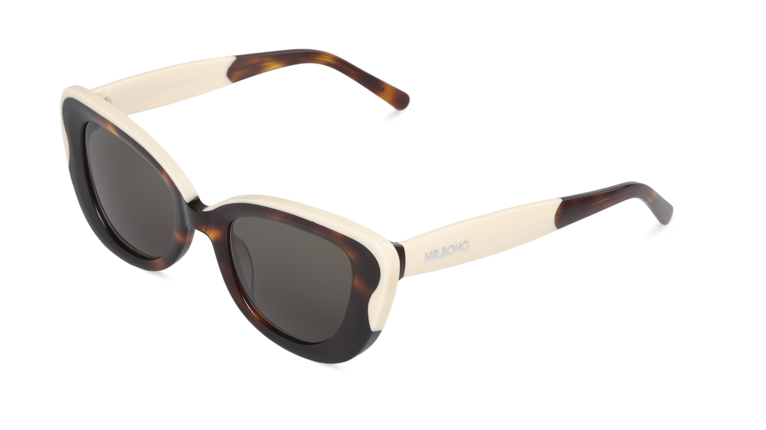 Gafas de sol cat-eye con acabado carey oscuro y detalles en crema en las esquinas superiores.. Su diseño curvo y atrevido mezcla actitud y un toque artístico que no pasa desapercibido.