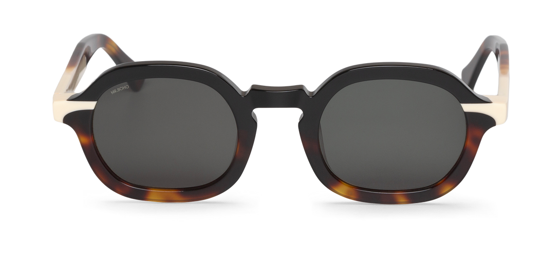 Las líneas curvas se armonizan en esta montura con acabado carey oscuro y detalles en crema para dar lugar a unas gafas de sol con personalidad de formas ovaladas y con presencia.