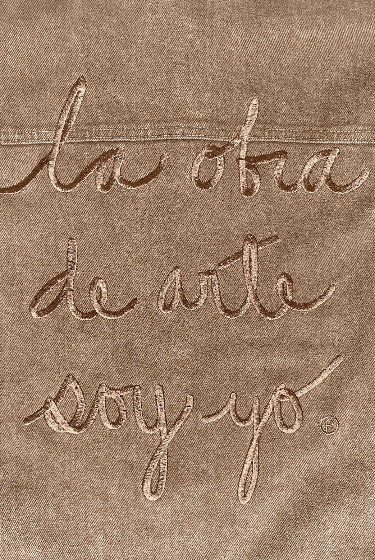 Chaqueta 100% algodón con cinturón y proceso de lavandería, bordada en espalda