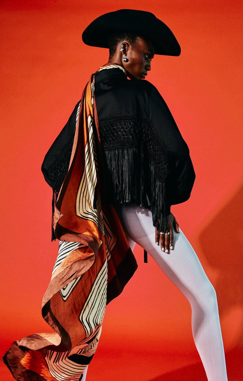 Chaqueta de fit holgado con cierre de botones en la parte delantera y cordón ajustable para recoger en la parte frontal. La modelo mide 1.76 m y lleva una talla S.