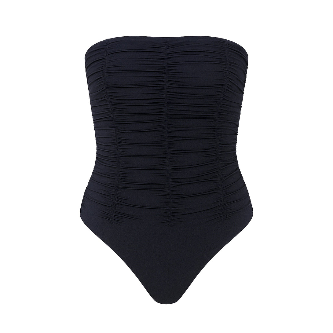 Florencia es un enterizo strapless con recogido decorativo en frente. Tiene cargaderas removibles. Cobertura posterior moderada. Composición de la tela: 78% Poliamida 22% Elastano.