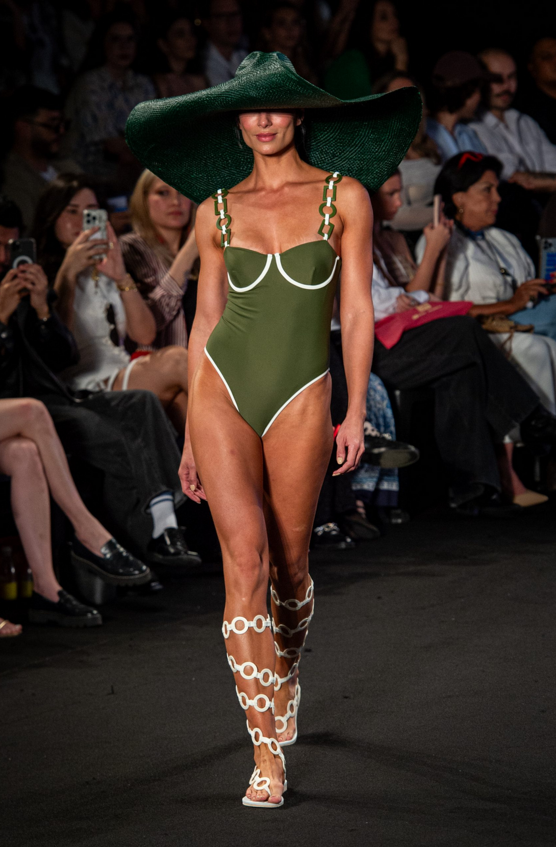 Nuestro traje de baño entero verde oliva con ribetes y tirantes blancos es uno de nuestros más vendidos. Las copas están diseñadas para realzar el busto con elegancia y los tirantes están adornados con aros y hebillas.
