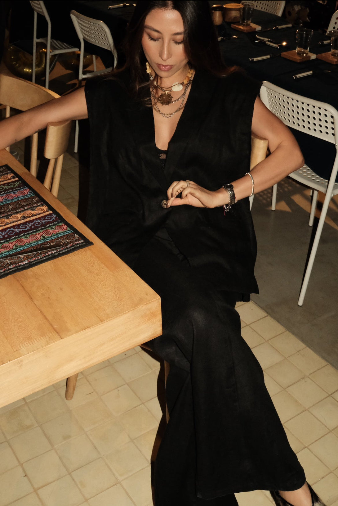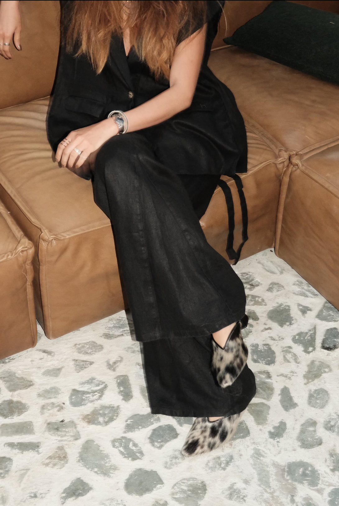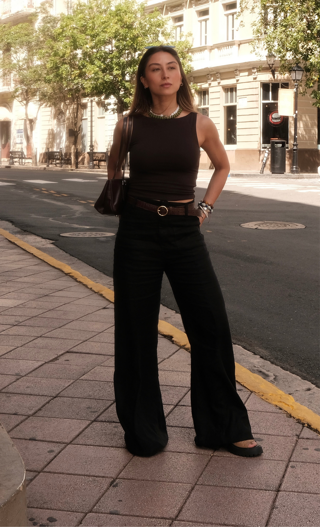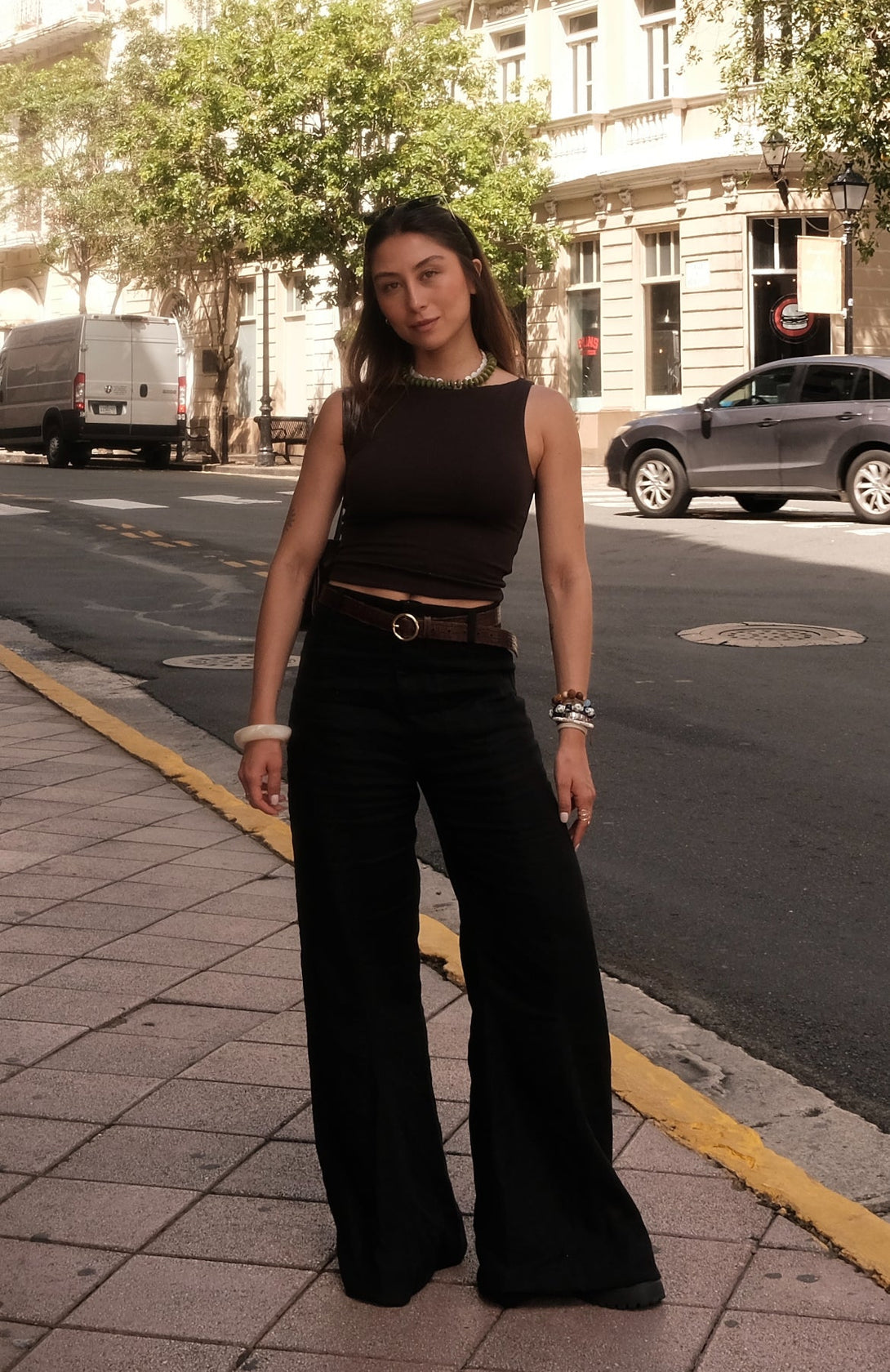 El pantalón Aire es nuestra interpretación de la feminidad en su forma más cómoda y estilizada. Con una silueta flare (bota campana) y tiro medio-alto, se adapta al cuerpo con un fit impecable.
