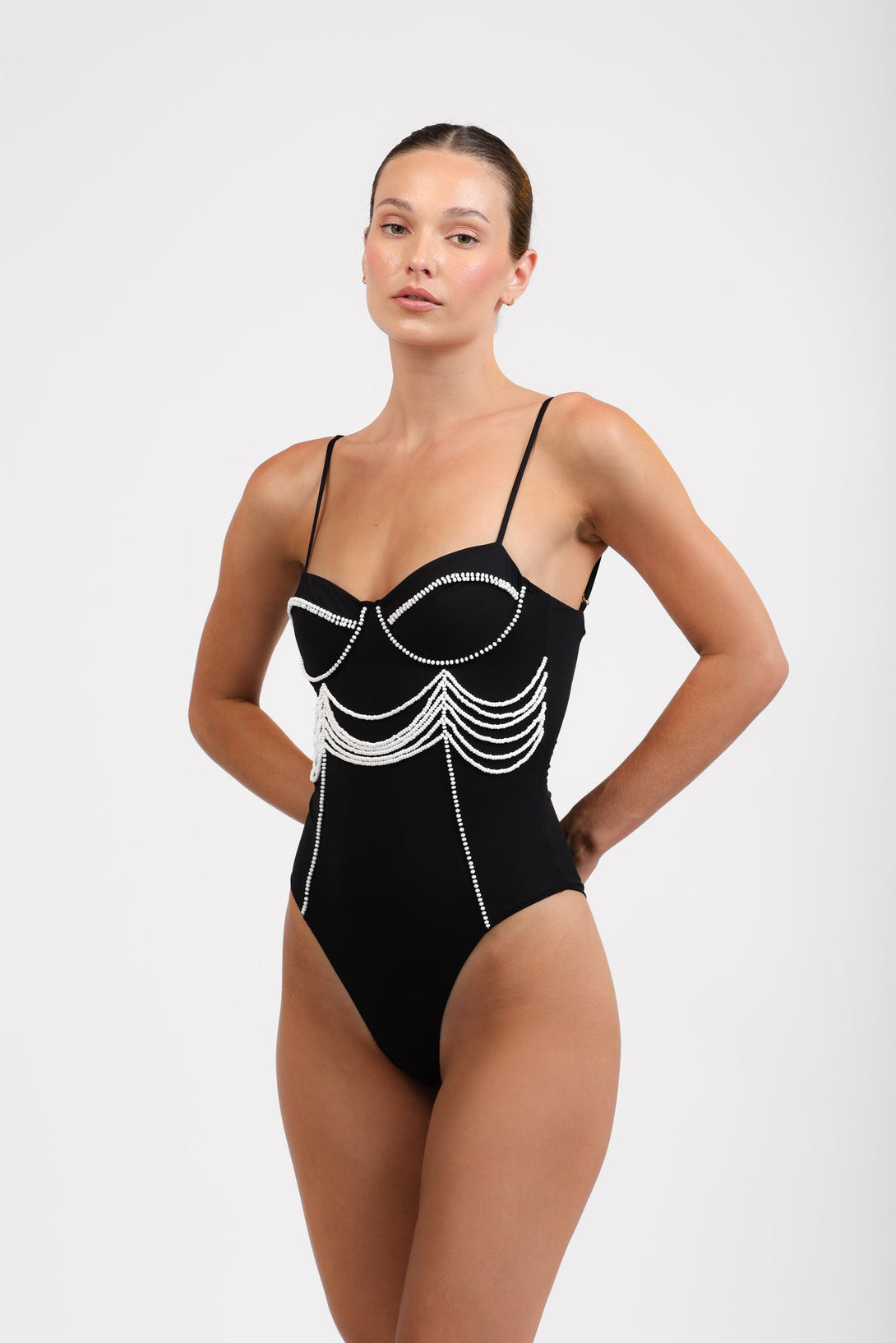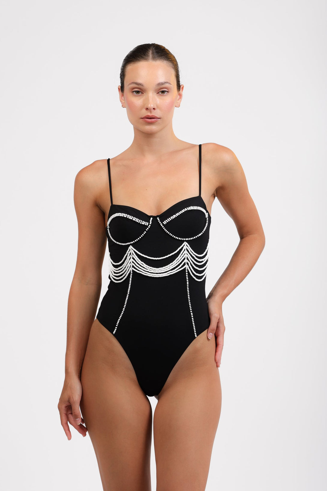 Enterizo clásico y best seller con varillas para muy buen soporte. Tiene tiras ajustables para mayor comodidad. Se amarra en la espalda. Incluye bordado a mano en las costuras de la copa y en el frente, y un detalle de bordado en caída que decora la pieza entera. Es muy versátil y se puede usar como body. Tiene copas removibles. Composición de la tela: 79% POLIAMIDA 21% ELASTANO.Prenda delicada. Evitar recostarse en superficies ásperas.Prenda delicada. Evitar recostarse en superficies ásperas.