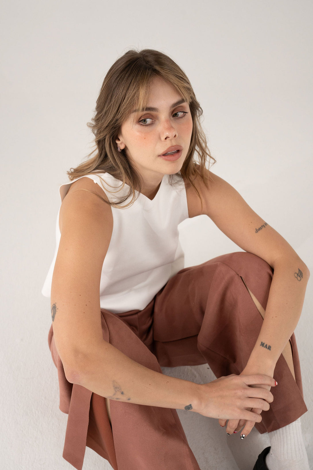 La combinación perfecta entre elegancia relajada y silueta favorecedora. Esta camisa ajustada acompañada del icónico Top Cleo te permite crear looks versátiles, frescos y con mucha personalidad.