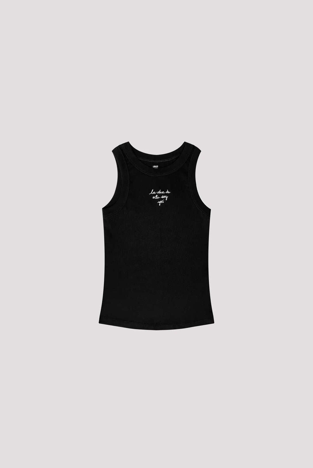 Camisilla ajustada al cuerpo, color negro, con bordado de la obra de arte soy yo