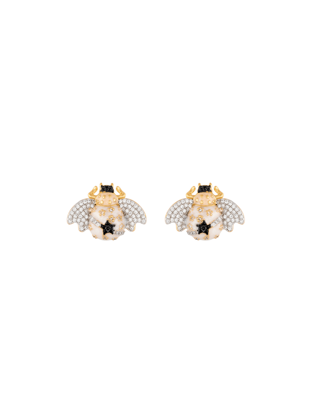 Un mundo donde la elegancia y la vitalidad se entrelazan, los Topos Ibis Nácar son un tributo a la naturaleza transformada en arte. Elaborados cuidadosamente en metal bronce con baño de oro de 18 kilates, rodio blanco y rodio negro, estos topos brillan con el encanto de sus circones en tonos cristal y onyx, adornados por detalles de esmalte en color perla.